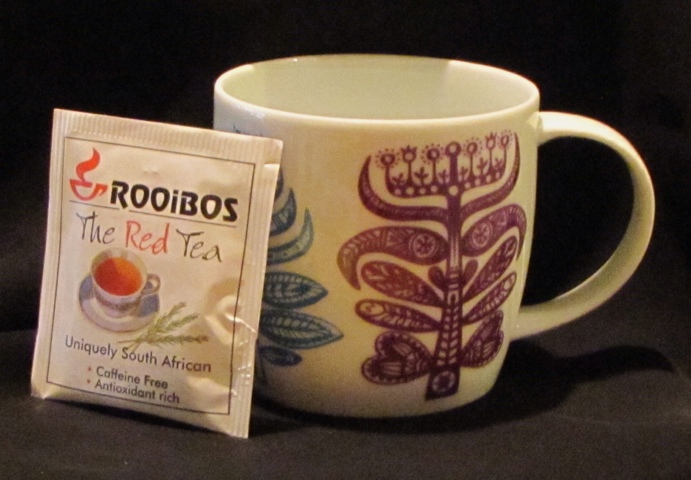 I received this sample of rooibos tea at the World Tea Expo. It is “Uniquely South African”! Naturally caffeine free and low in harmful tannins. It had a beautiful red color and earthy flavor. I enjoyed it hot, but believe I may have liked it iced better. It had a little bit of too strong of a taste for me, however, Bob gave it a definite thumbs up.