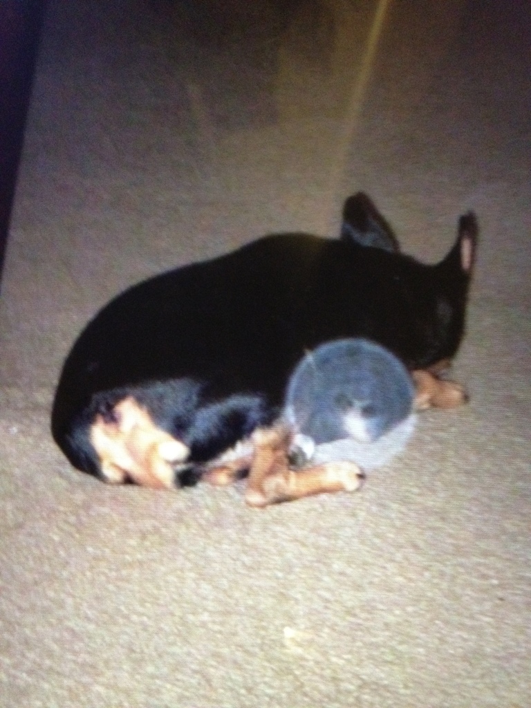 I truly believe that our dog Randi, who passed away three years ago was comforting Tigger. It looks to me like Randi laid down right next to Tigger as a bright and shiny orb. I know that sounds crazy but I would like to think it is true!