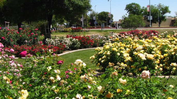 The photographs for today are from April when we visited The Rose Garden at Mesa Community College. There are over 9000 rose bushes at this garden and all of them were tended to so beautifully. There was Sexy Rexy, Voodoo, Hot Cocoa, Soaring Spirits and Love and Peace to name a few. I’m not sure of the peak blooming season, although I know that March and April are gorgeous times. I believe in the summer they may be trimmed down due to the heat. I can’t wait to go back and try to capture even more beautiful roses on my camera.