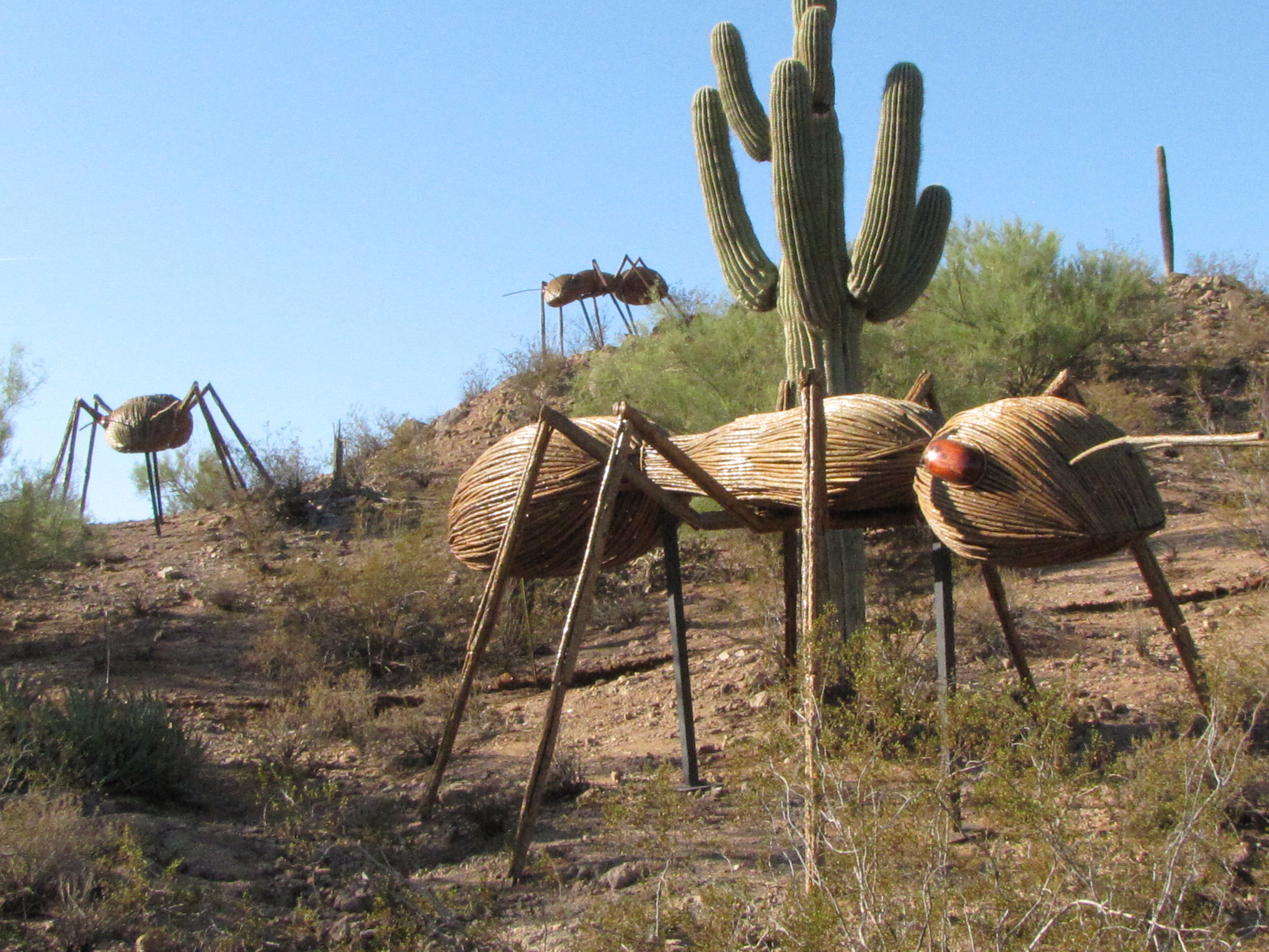 On the Sonoran Living Nature Loop Trail was my favorite part of the exhibit – three large ants coming down the mountain…