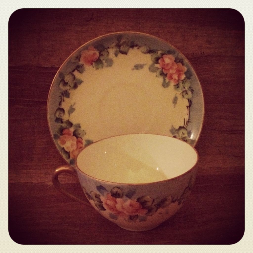 So here it is Tuesday night and as I look around my home a lot of ideas of “old” comes to mind! I narrowed it down to my teacups and teapot and one little tidbit at the end.