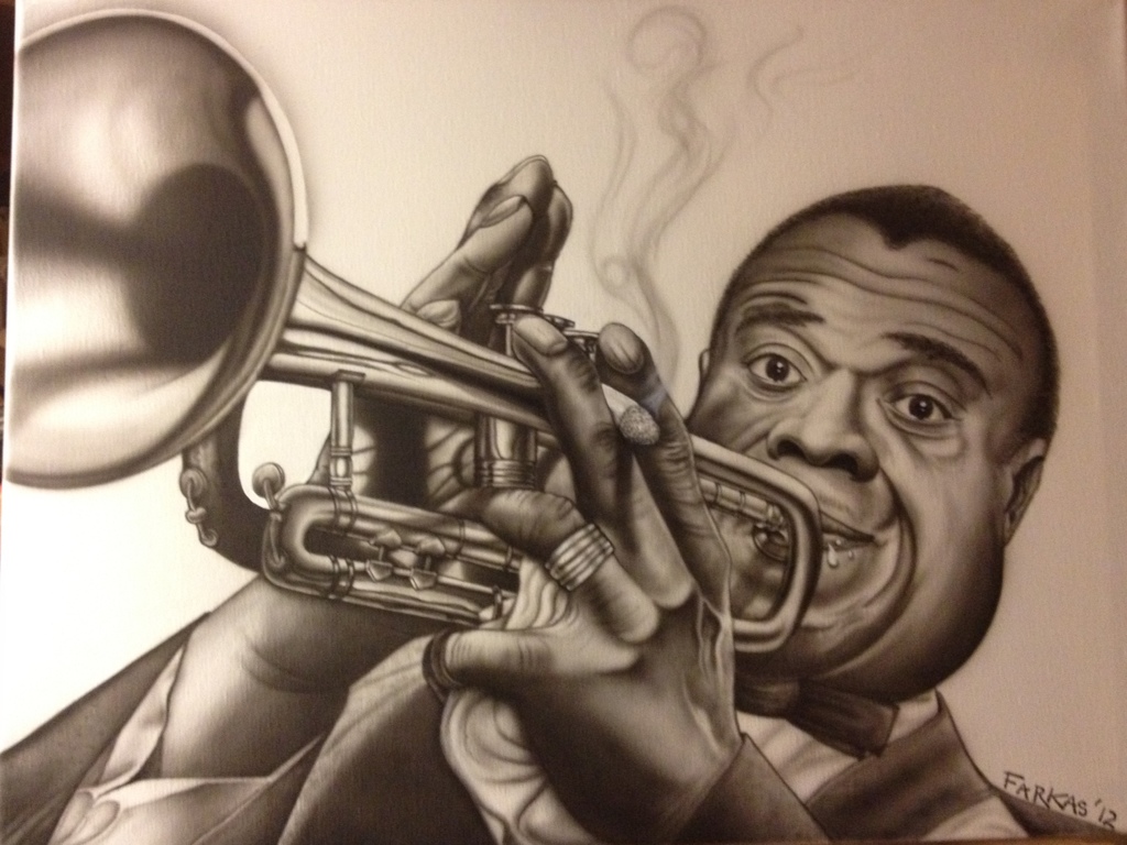 Below is a photograph of a painting my very talented husband painted for a friend. It is of Louis Armstrong and I just had to share it with all of you because after 27 years together I am still shocked by his talent. I also raise my glass to a talent filled artful year ahead for both of us.