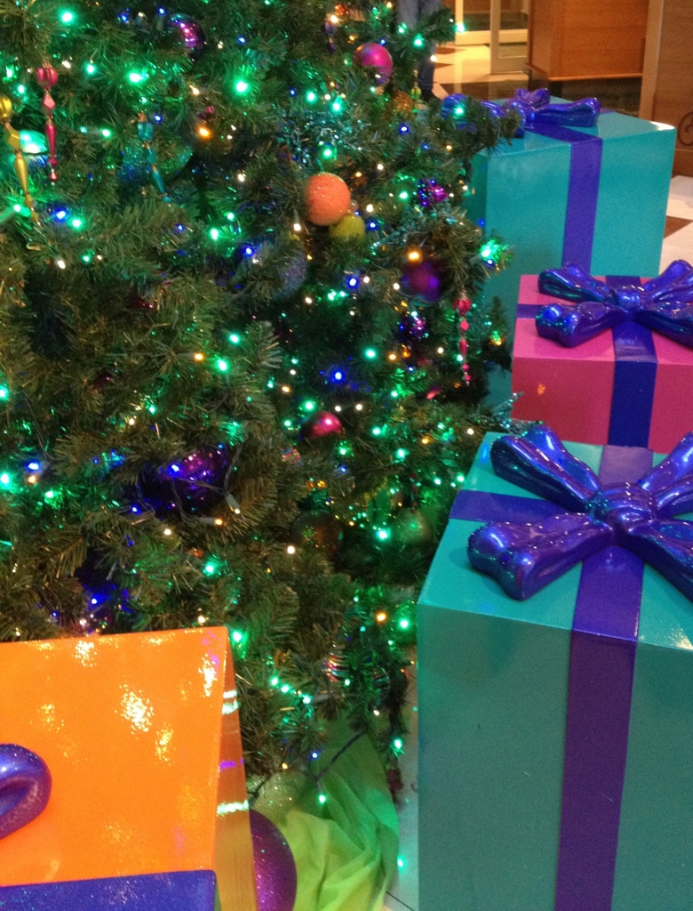 After sitting in the lobby for about 5 minutes I got antsy and took off with my daughter to do some exploring. We came across this beautiful Christmas tree in the lobby of the Paradise Pier Hotel. I had great phone taking photographs of the tree and decorations.