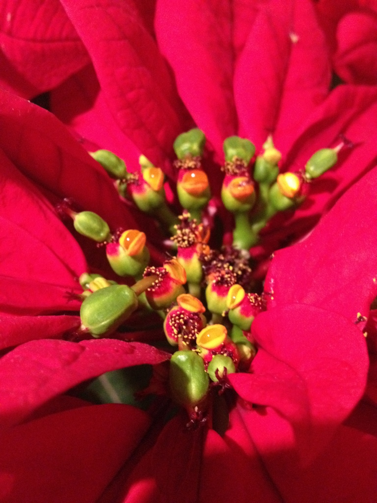 After taking some pics of the tree I moved on to the poinsettia and tried out my new macro lens on my phone camera for a quick close up.