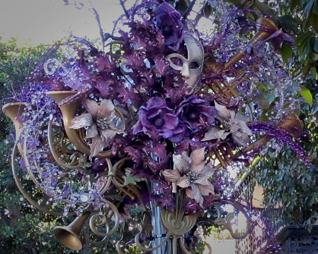 My favorite part of the park this holiday season was New Orleans area, but just could not get a good photo of the pretty decorations, either due to my tired tired feet, the massive crowds or the lighting, but here is one photo of just many unique decorations!