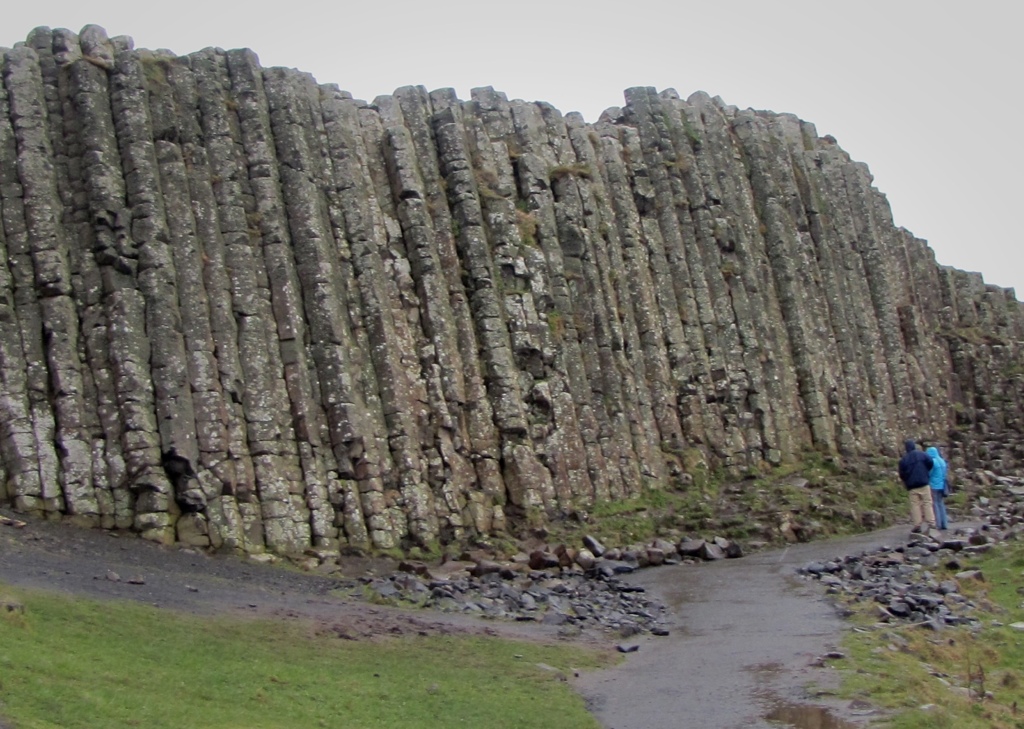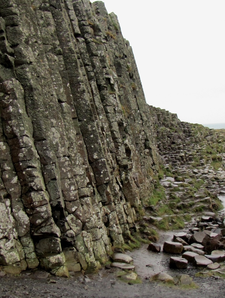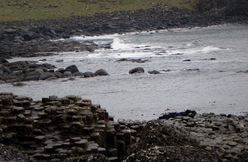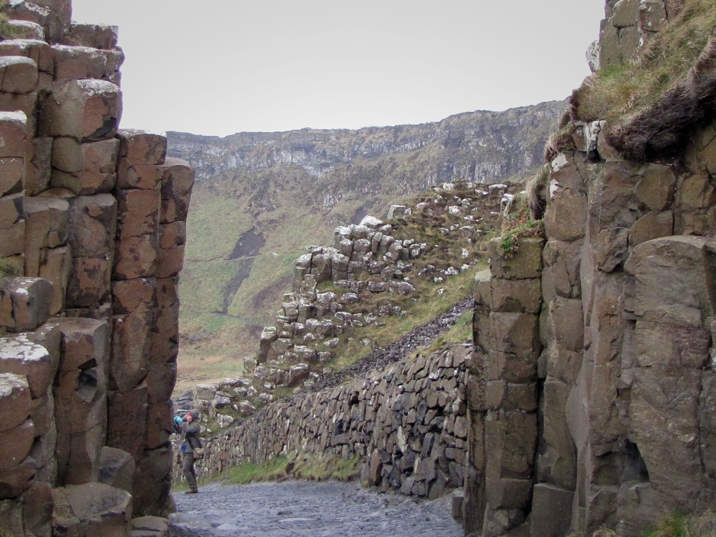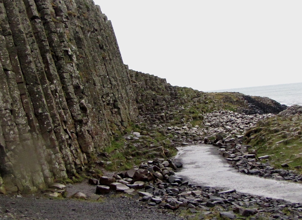 Legend, according to Wikipedia: Legend tells of an Irish warrior Fionn mac Cumhaill, who built a causeway to Scotland. One version of the legend tells that Fionn was challenged by a Scottish giant, Benandonner. Now Benandonner was much much larger than Fionn, so he tried to think of a way out. His wife, Oonagh, came up with an ingenious idea. When Benandonner crossed the bridge looking for him, Oonagh disguised Fionn as a baby and tucked him in a cradle. When Benandonner came, Oonagh told him that Fionn was out woodcutting, but he should be back soon. She showed him ‘Fionn’s son’. When Benandonner saw the size of the baby, he had no desire to see the father! Benandonner fled home in terror, ripping up the Causeway behind him, so the ‘enormous Finn MacCool’, would not follow him.