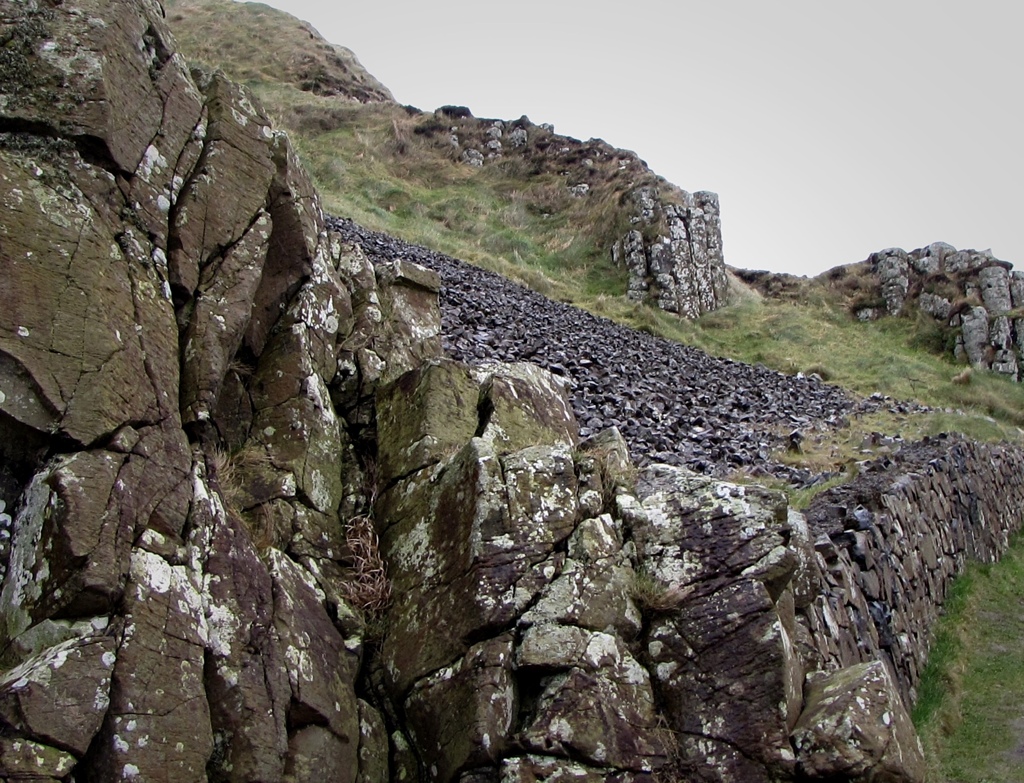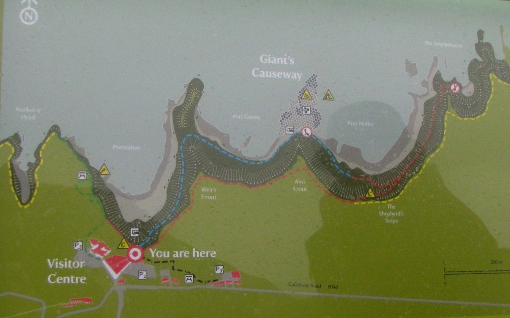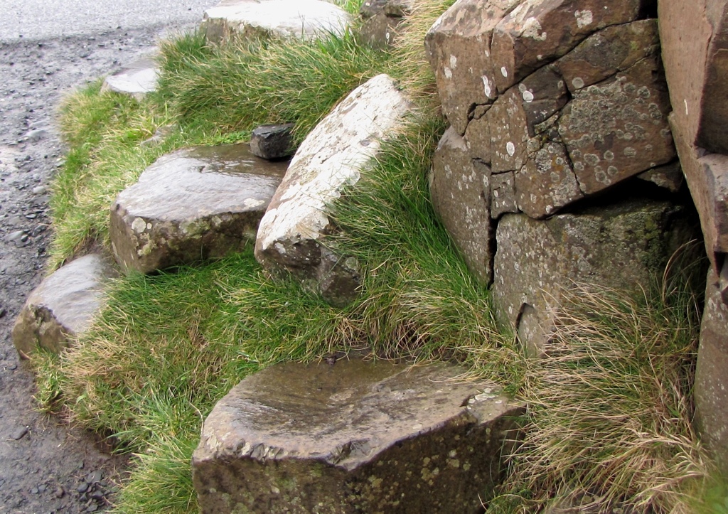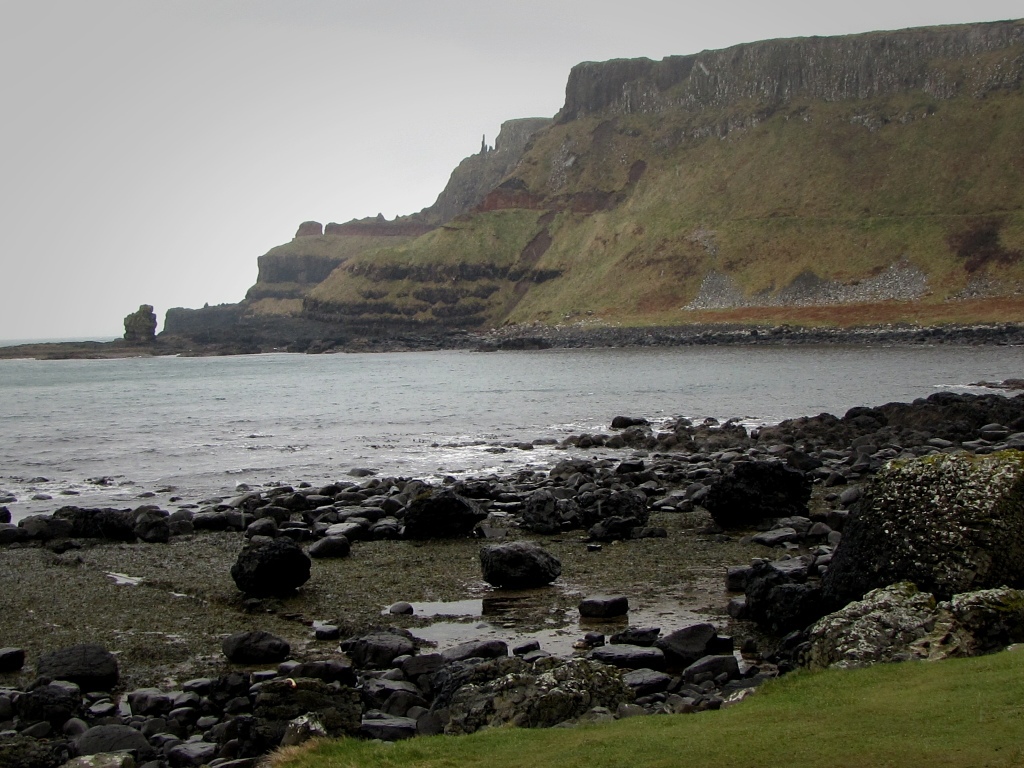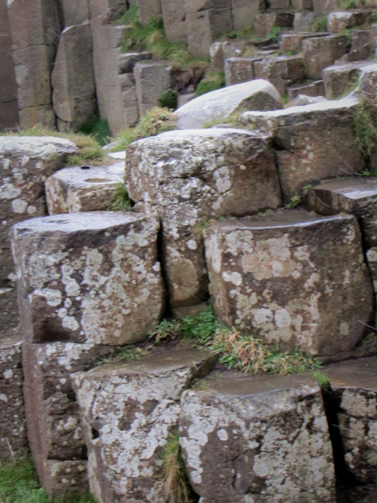 Legend, according to Wikipedia: Legend tells of an Irish warrior Fionn mac Cumhaill, who built a causeway to Scotland. One version of the legend tells that Fionn was challenged by a Scottish giant, Benandonner. Now Benandonner was much much larger than Fionn, so he tried to think of a way out. His wife, Oonagh, came up with an ingenious idea. When Benandonner crossed the bridge looking for him, Oonagh disguised Fionn as a baby and tucked him in a cradle. When Benandonner came, Oonagh told him that Fionn was out woodcutting, but he should be back soon. She showed him ‘Fionn’s son’. When Benandonner saw the size of the baby, he had no desire to see the father! Benandonner fled home in terror, ripping up the Causeway behind him, so the ‘enormous Finn MacCool’, would not follow him.