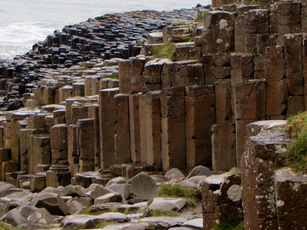 The Giant’s Causeway (known as Clochán an Aifir or Clochán na bhFomhórach in Irish and tha Giant’s Causey in Ulster-Scots) is an area of about 40,000 interlocking basalt columns, the result of an ancient volcanic eruption.