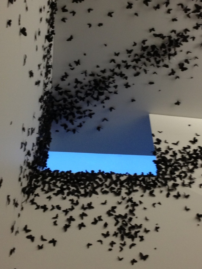 Black Cloud was an art instillation of approximately 25,000 paper butterflies glued to the walls and ceiling of the lobby and halls of the museum.