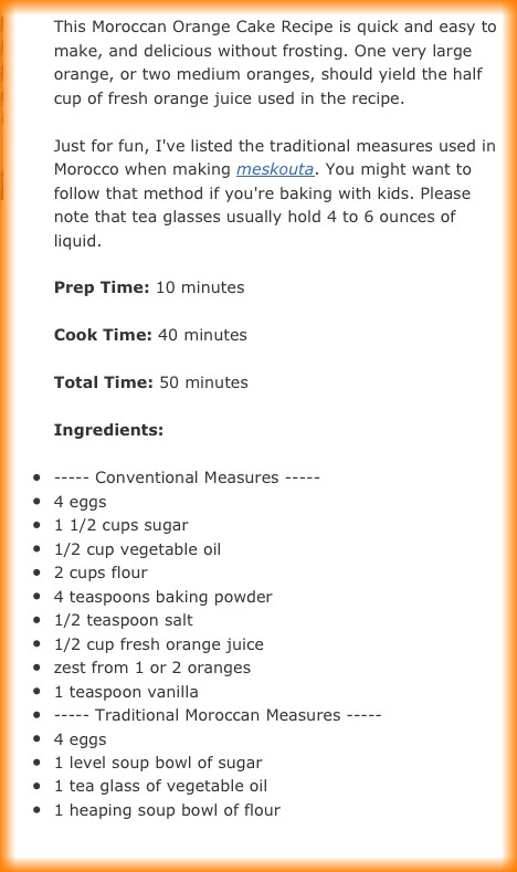 I made a Morrocan Orange Cake, below, with the recipe to follow from here.