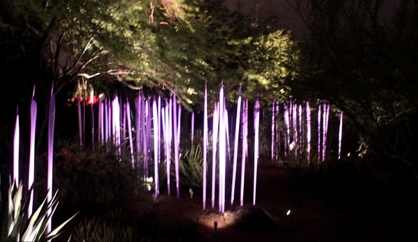 The night we were at the gardens there was at least two weddings going on. Felt bad that the weather was so bad for them! However, I did see one of the brides posing in these works of purple glass, what a neat idea!