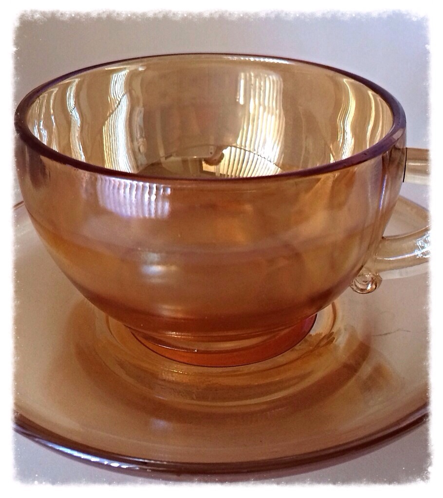 My second purchase was a teacup made with Carnival glass. I just loved how the light changed the colors like the rainbow.