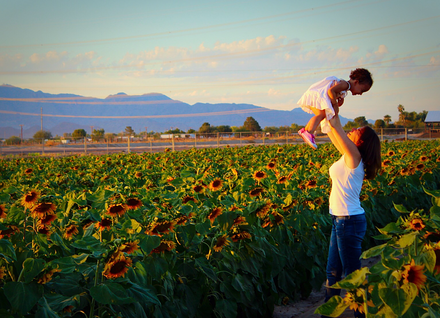 There was a petting zoo, barrel train, corn maze, pumpkins, inflatable bouncer, food, and best of all was the Sunflower Patch.