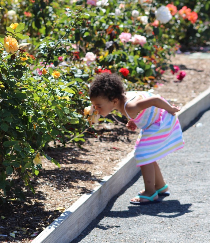 I’m not sure when they are normally in bloom, except when we went it was in April of 2015 and the flowers were in full bloom! As you can tell by the photos below little Ms. M sure enjoyed smelling the flowers!