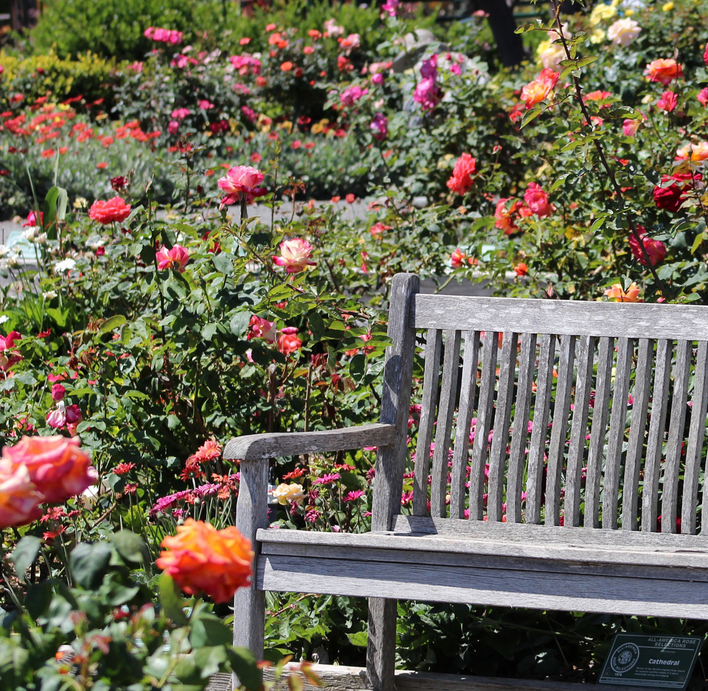 One of the prettiest rose gardens I’ve seen resides at The Flower Fields in Carlsbad, California.