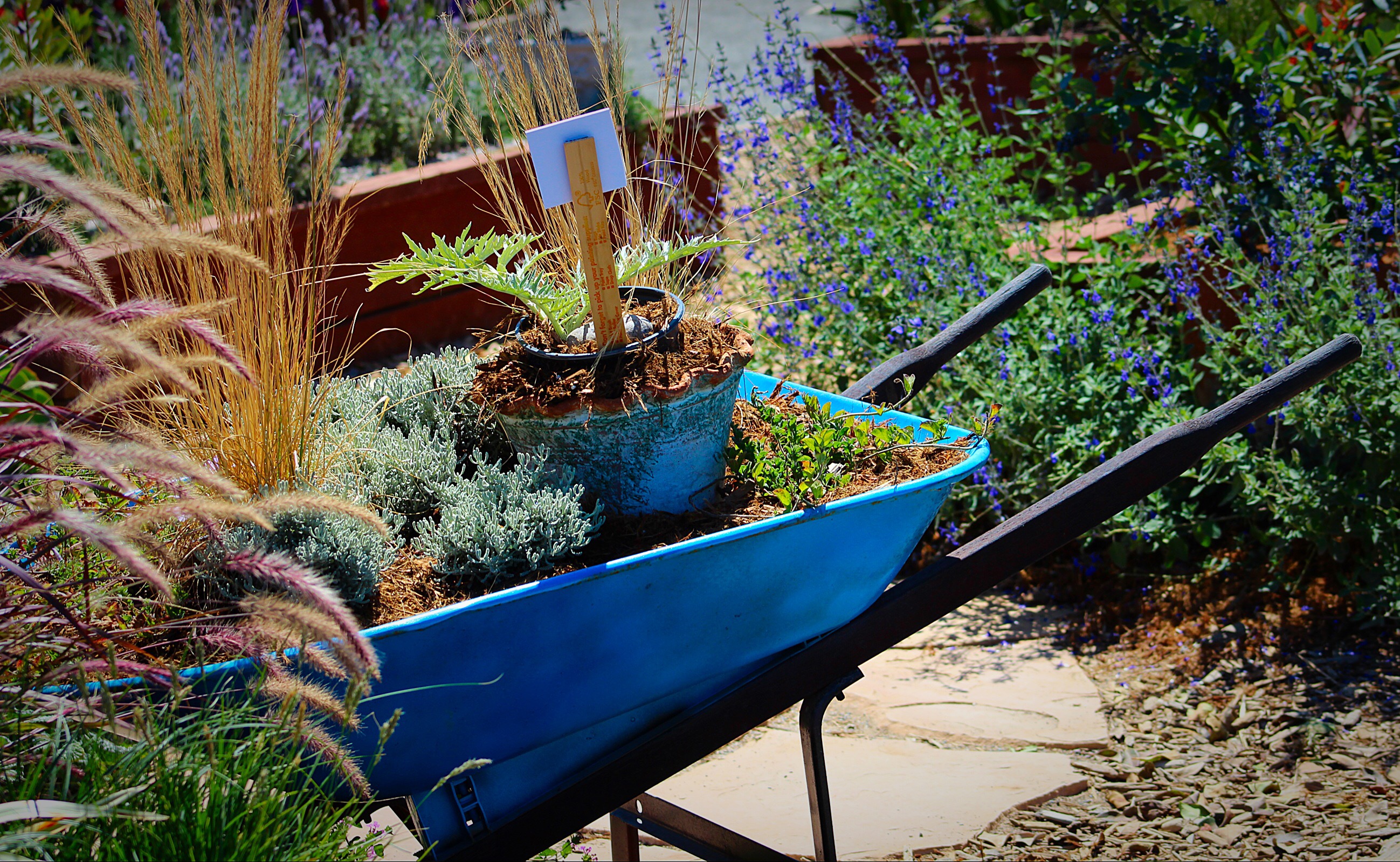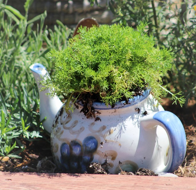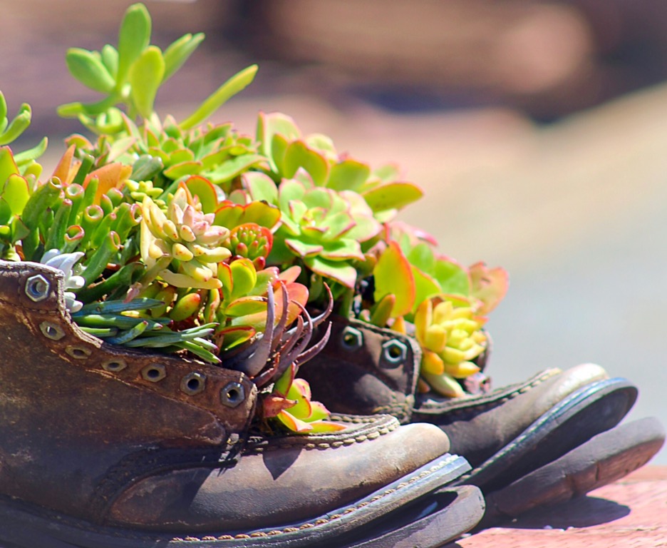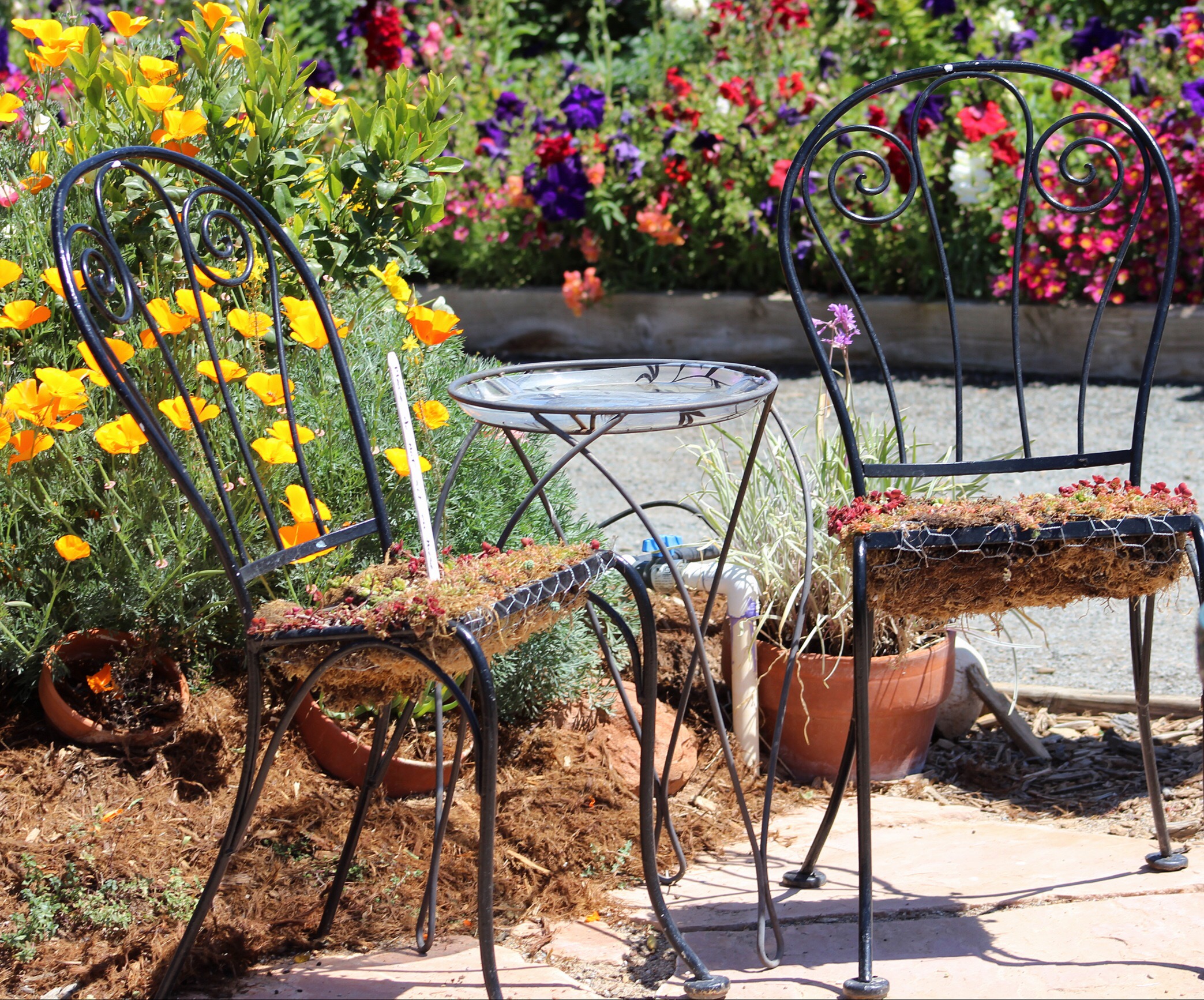 Not only does The Flower Fields have beautiful flowers and roses, they have a cute area with succulents, with boots, teapots, chairs and tables.