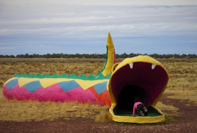 I don’t remember what the price was to get in, but it wasn’t much. The entrance was thru a gift shop full of cheap and expensive gifts. Flintstone Land (pretty sure that’s not its actual name) was definitely something to see! We really didn’t know what to think. It has seen better days!