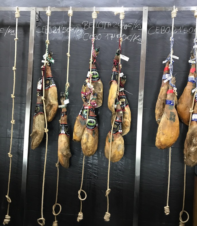 After leaving Evora we had quite a long bus ride, with a few breaks on the way. We drove to Seville in Spain. One of the things I love about overseas is the truck stops or service stations off the highway are just great. They have places inside with plenty of restrooms, tea and coffee with pastries, gifts and limited groceries. One of our stops had this drying ham in different stages.