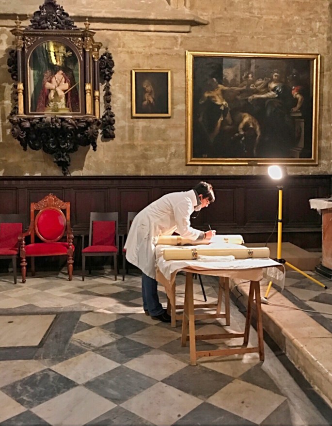 I remember when I took this photo, the moment I saw the scene. I was walking around the Church of Seville when my travel mates were climbing the bell tower and I came across this women working on a scroll. I think I froze and I’m not sure what exactly made me love this scene so much. I just knew I had to capture it in my camera. I remember having the opportunity to take only one photo, the one above. It may not be perfect, but I knew I had to get one before I had to move on.