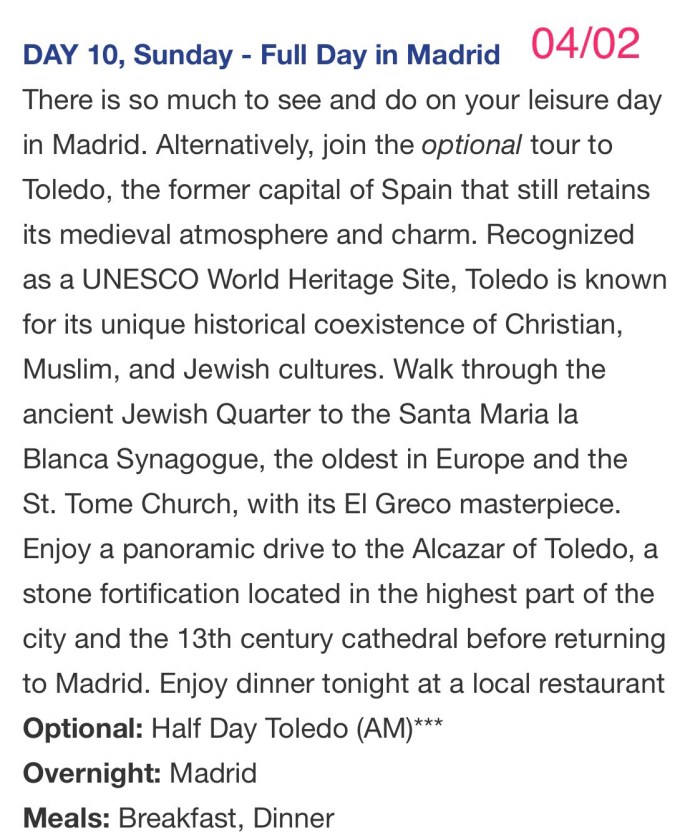 On Day 10 of our Gate 1 Travel tour we had a free day and an optional tour toToledo. We had a beautiful day. Tons of walking, lots of history and even new street art.