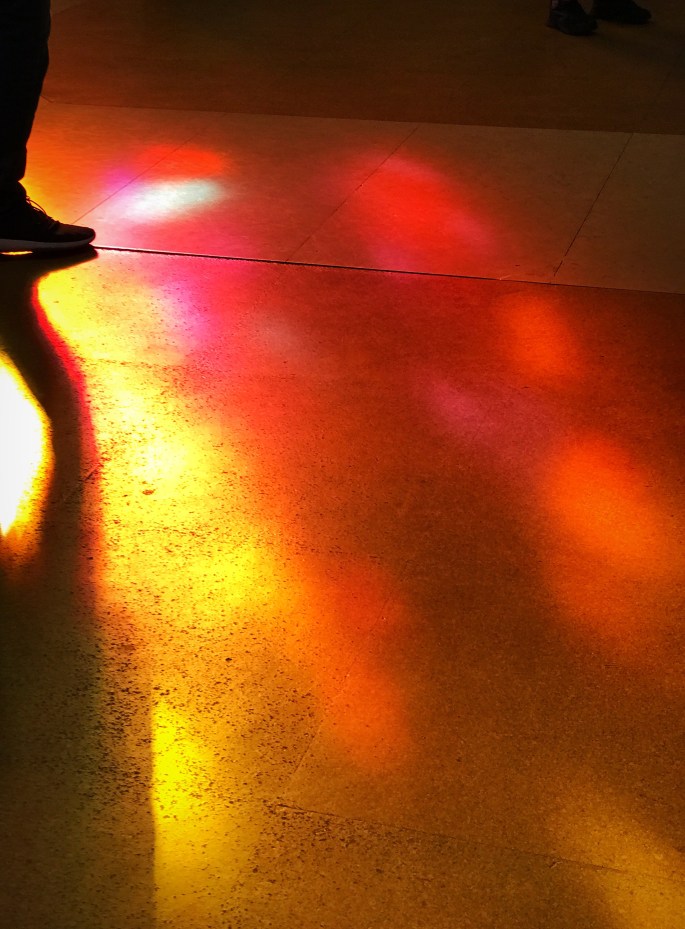 I thought during this post I would show you some photos of the beautiful stained glass and colors that filter thru everywhere.