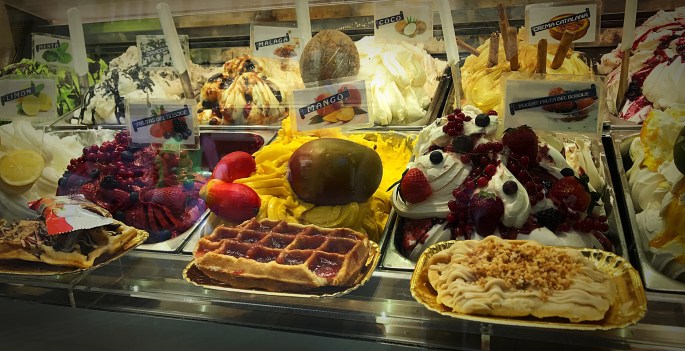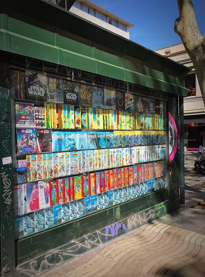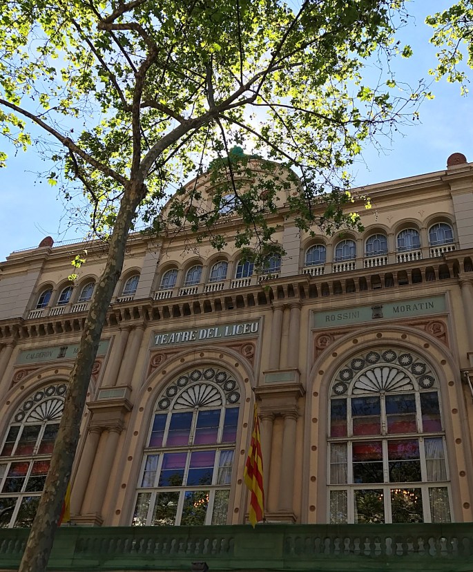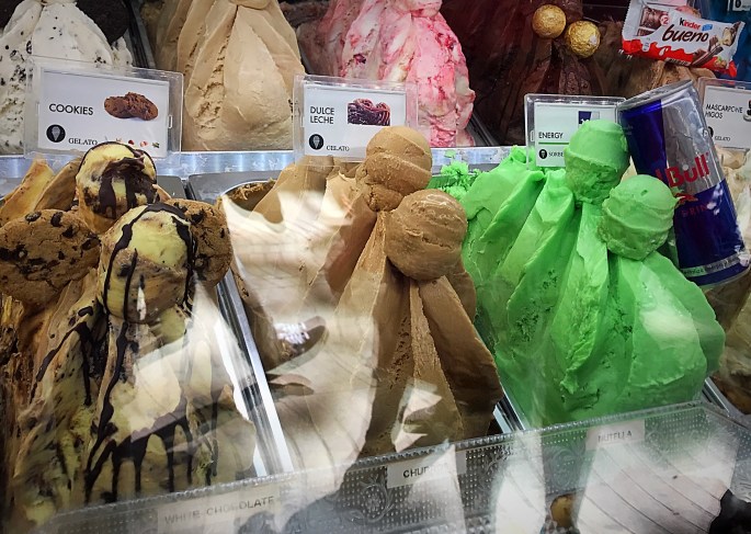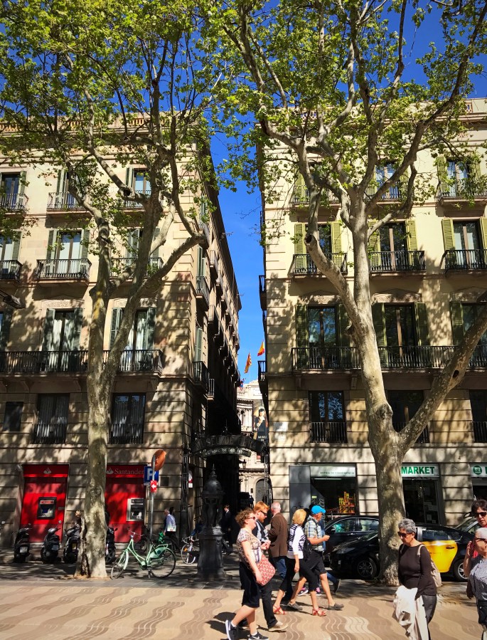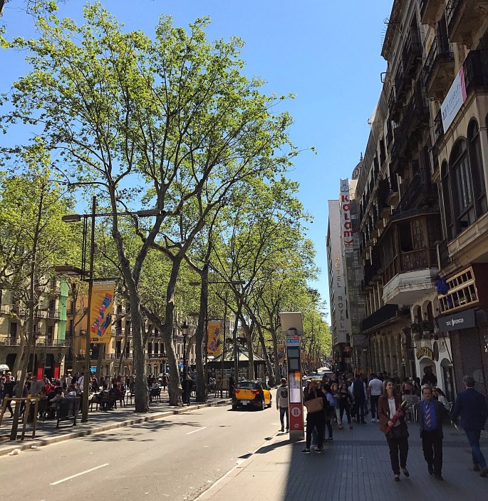 After spending the majority of our day visiting the Gaudi sites, we took a crazy taxi ride to La Rambla. I basically knew what to expect as I had done some research and watched some videos. Even though I had watched some shows on La Rambla I wasn’t ready for how pretty it really is. The trees are amazing. It was so unusual how stalls of wares were in sections, such as flowers, then restaurants, then gelato, art work, street performers, etc. instead of mixing them up they were all together in sections. Kind of neat, until you wanted gelato and it was at the other end!